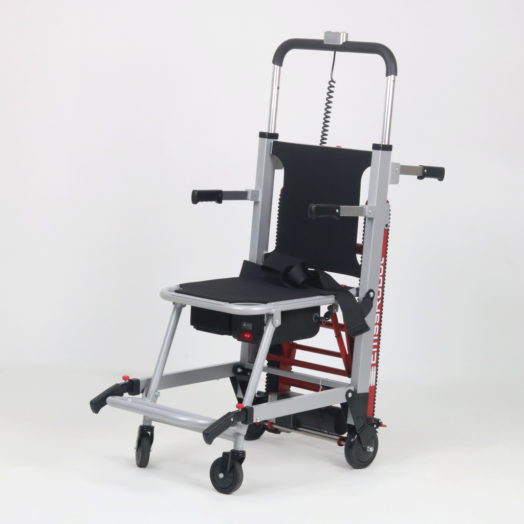 Evakuační křesla jsou ideální pro rychlý převoz pacientů po schodech v případě nouze. EMSS Evacu má gumové pásy.